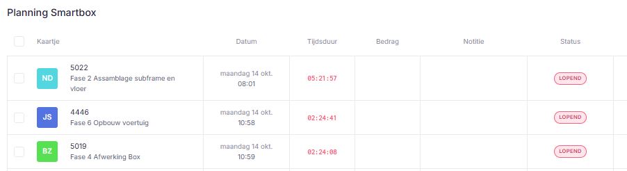 We houden altijd een overzicht open zodat medewerkers kunnen zien of ze zijn ingeklokt. Om dit duidelijk op 1 scherm te zien is er gekozen voor statussen. Helaas is dan niet super duidelijk welke gebruiker ingeklokt staat. Het zou fijn zijn als de volledige naam ook zichtbaar wordt.